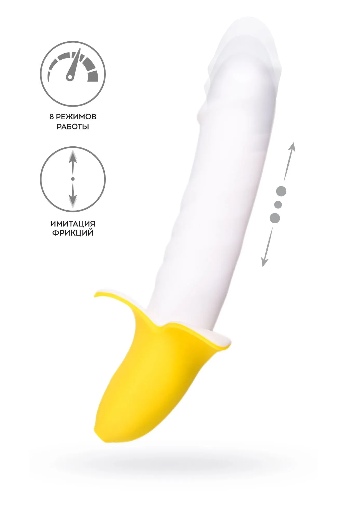 B-NANA - массажер с имитацией фрикций. Яркий и "вкусный" дизайн массажера не оставит никого равнодушным! Имитация головки и ребристая поверхность ствола позволит испытать ощущения на максимуме. Главная фишка - это возвратно-поступательные движения массажера, которые имитируют фрикции. B-NANA работает в 8 различных режимах. Мощные оргазмы гарантированы. Комфортное управление одной кнопкой. Изготовлен из высококачественного бархатистого силикона. 8 режимов возвратно-поступательных движений Реалистичная головка и ребристая поверхность Время до полной зарядки - 2 часа Время работы - 1,5 час Заряжается от USB