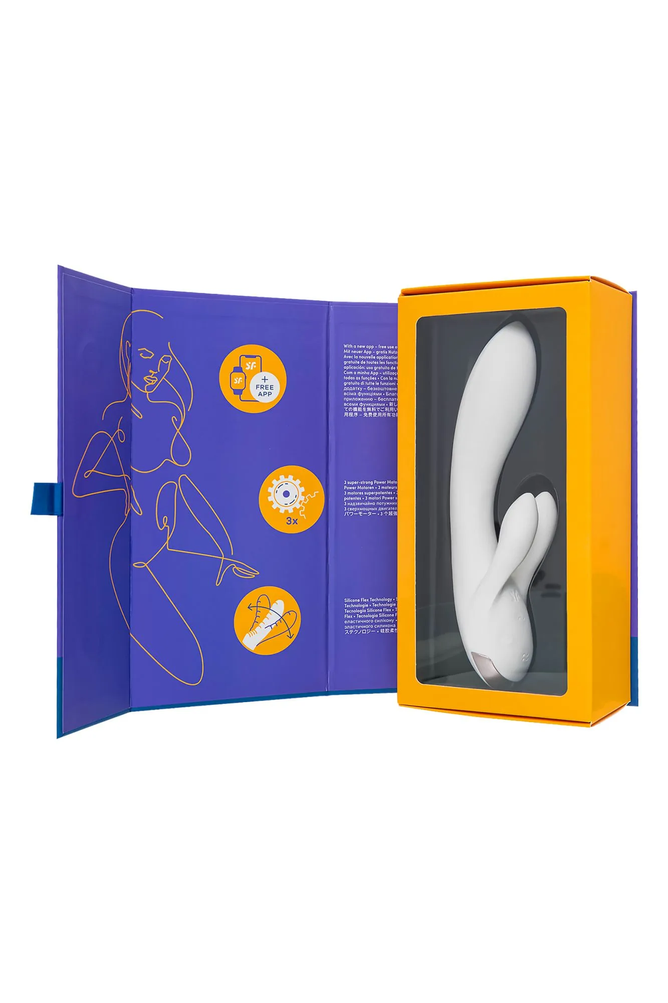 Позвольте себе тройной заряд энергии и наслаждения с вибратором Double Flex от Satisfyer. Этот кролик с тремя сверхмощными моторами погружает в мир одновременной стимуляции точки G и клитора. Гибкий Double Flex легко подстраивается под вашу анатомию, создавая уникальный контур, благодаря технологии Silicone Flex. Клиторальный отросток разделен на два ушка, которыми он обнимает клитор и дарит захватывающее удовольствие половым губам. Вариативность использования радует разнообразием – клиторальные и вагинальный отростки могут работать в разных ритмах. В вашем распоряжении 12 предустановленных режимов вибрации. Испытайте удовольствие по-настоящему с бесплатной функцией управление при помощи смартфона с поддержкой Bluetooth через приложение Satisfyer Connect, доступное на Android и iOS. Создавайте собственные уникальные режимы вибрации, существенно расширив возможности предустановленных режимов. Девайс способен вибрировать даже в такт музыке. Satisfyer Connect не имеет границ – передавайте управление наслаждением партнеру даже на большом расстоянии. Плавные изгибы и эргономичная форма обеспечивают легкое проникновение. Double Flex удобно лежит в руке и радует своим стильным и элегантным дизайном. Шелковистое силиконовое покрытие — фирменный знак Satisfyer, тактильно нежный и приятный на ощупь, он быстро адаптируется к температуре вашего тела. Длина вагинальной части 15,5 см, а диаметр – 3,4 см, что делает кролика идеальным вариантом для первой игрушки. Ощутите все прелести влажных приключений, ведь благодаря водонепроницаемой оболочке IPX7 Double Flex не только легок в уходе, но и безопасен для использования в ванне и душе. Чтобы получить максимум удовольствия и сохранить материал в наилучшем виде, рекомендуется пользоваться качественной смазкой на водной основе. После использования обязательно очищайте вибратор теплой водой со специальными бактерицидными спреями для интимных товаров. Особенности: 3 мощных мотора и вибрация по всей игрушке 2 клиторальных отростка 12 режимов вибрации и неограниченное количество режимов в приложении Satisfyer Connect с подключением через Bluetooth. Стильный современный дизайн и нежный, эластичный силикон без запаха, без аллергенов и вредных для здоровья веществ. Водонепроницаемый (IPX7) Идеальный вариант для первой игрушки Перезаряжаемый, магнитный USB-кабель. 15 лет гарантии от производителя.
