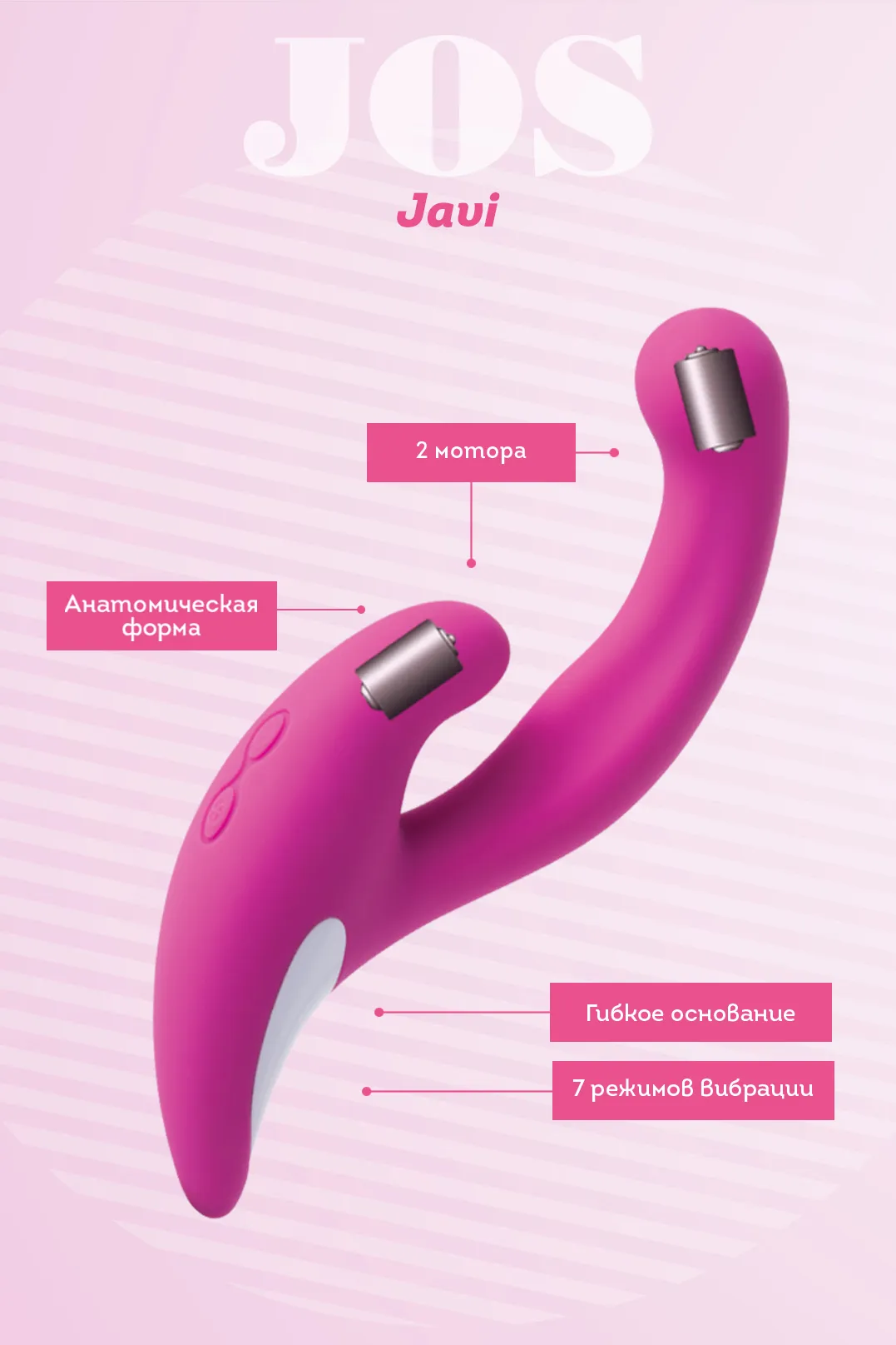 Вибратор имеет точно выверенный эргономичный дизайн и гибкое основание. Он подстроится под индивидуальные особенности каждой женщины и обязательно доберется до всех горячих точек. Изогнутая головка с мощным мотором создана для точки G. Изготовлен из высококачественного бархатистого силикона. Емкий аккумулятор (до 2 часов непрерывной работы!) заряжается от USB. Бесшумная вибрация Эргономичный дизайн Гибкое основание 2 мощных мотора 7 режимов вибрации