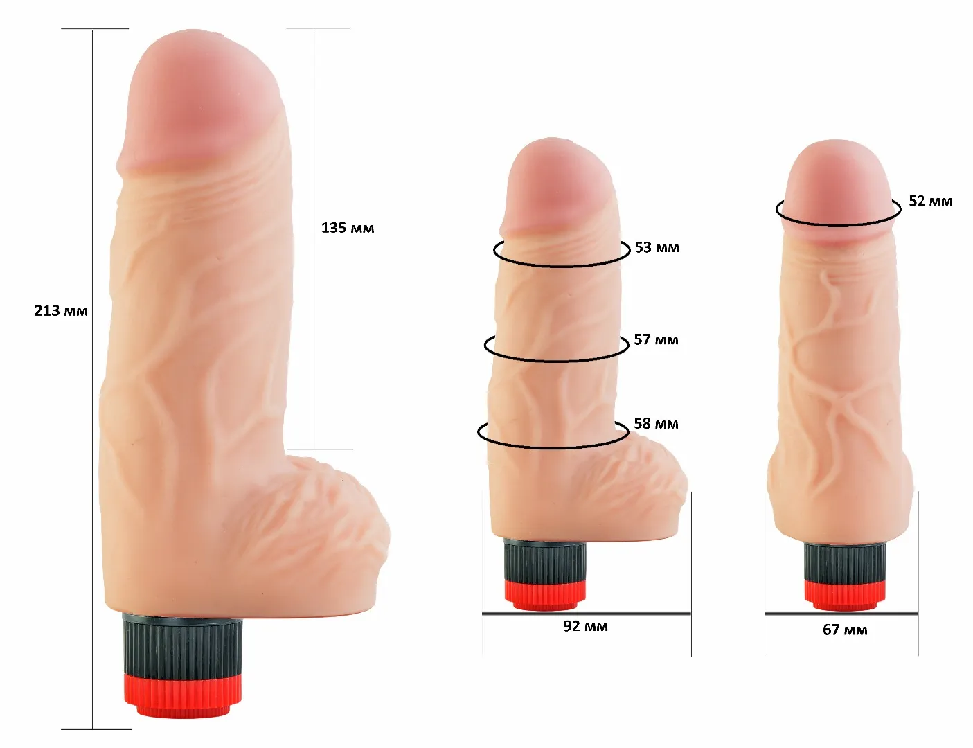 Вибромассажёр телесного цвета. Имеет форму члена с мошонкой и ярковыраженной головкой. Необычайно приятный, рельефный, выполненный из «Киберкожи» , передающий эффект мягкой реалистичной текстуры кожи, не имеет швов. Виброэлемент расположен ближе к головке, для максимальной стимуляции. Степень вибрации регулируется при помощи кнопки, расположенной в основании.Общая длина (с виброэлементом) – 21 см, рабочая длина-14 см, максимальный диаметр -5,6 см. упаковка в виде прозрачной пленки.