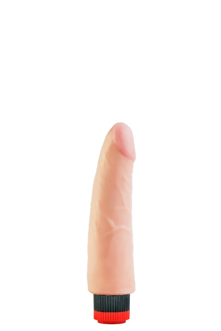 Вибратор-реалистик телесного цвета. Имеет форму члена с ярко-выраженной головкой, рельефный, выполненный из материала неоскин, не имеет швов. Скорость вибрации регулируется кнопкой у основания изделия. Характеристика: работает от 2АА батареек (нет в комплекте), общая длина – 20,5 см, рабочая длина- 17 см, максимальный диаметр- 5 см, без запаха, упакован в пленку.