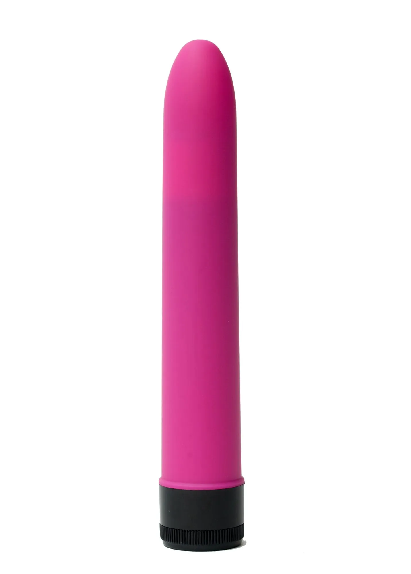 Гладкий классический вибратор с силиконовым напылением приносит незабываемые ощущения свой хозяйке, удобен в разнообразном использовании и занимает мало места в месте хранения. Эстетичный внешний вид позволит его хранить на виду.Изготовлен из пластика и силикона, работает от 2 батареек АА (нет в комплекте). Уровнем вибрации легко управлять с помощью удобно вращающейся части в основании. Характеристики: Водонепроницаемый, общая длина- 17,5 см, диаметр- 2,7 см. Вес игрушки- 75 гр. Упаковка- картонная коробка с принтом.