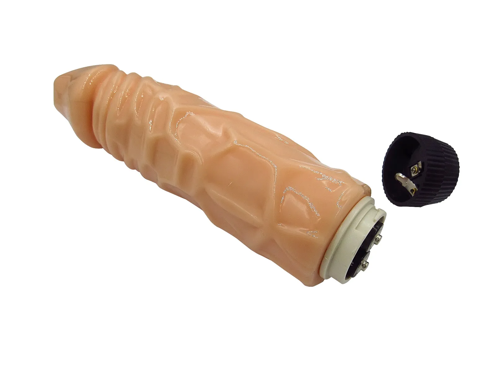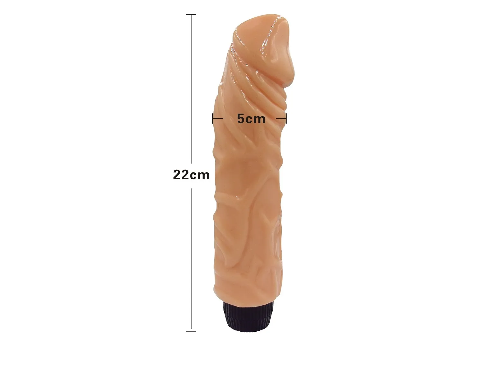Этот вибратор подарит роскошные ощущения ценителям интенсивных ласк. Невероятно реалистичный вибратор с ярко выраженной областью головки, имеет плавную регулировку скорости вибрации. Необычайно приятный, рельефный, мягкий на ощупь, выполненный из термопластичного эластомера. Общая длина – 22 см, рабочая длина – 19,5 см, максимальный диаметр – 5,5 см. Работает от 2АА батареек (нет в комплекте). Упаковка- картонная коробка с принтом. Вес изделия 275 г.