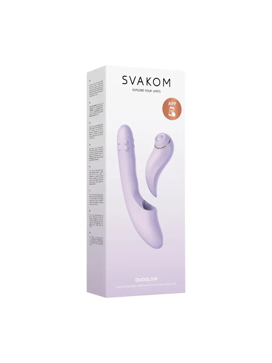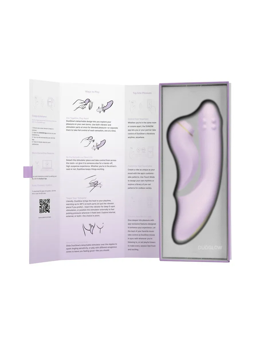 Многофункциональный вибратор со съёмным клиторальным стимулятором Svakom Duo Glow — это высококачественная секс-игрушка “2в1”. Вы можете использовать вибратор и клиторальный стимулятор одновременно в качестве вибратора-кролика для получения двойного удовольствия или снять клиторальный стимулятор, чтобы наслаждаться каждым компонентом игрушки по отдельности.