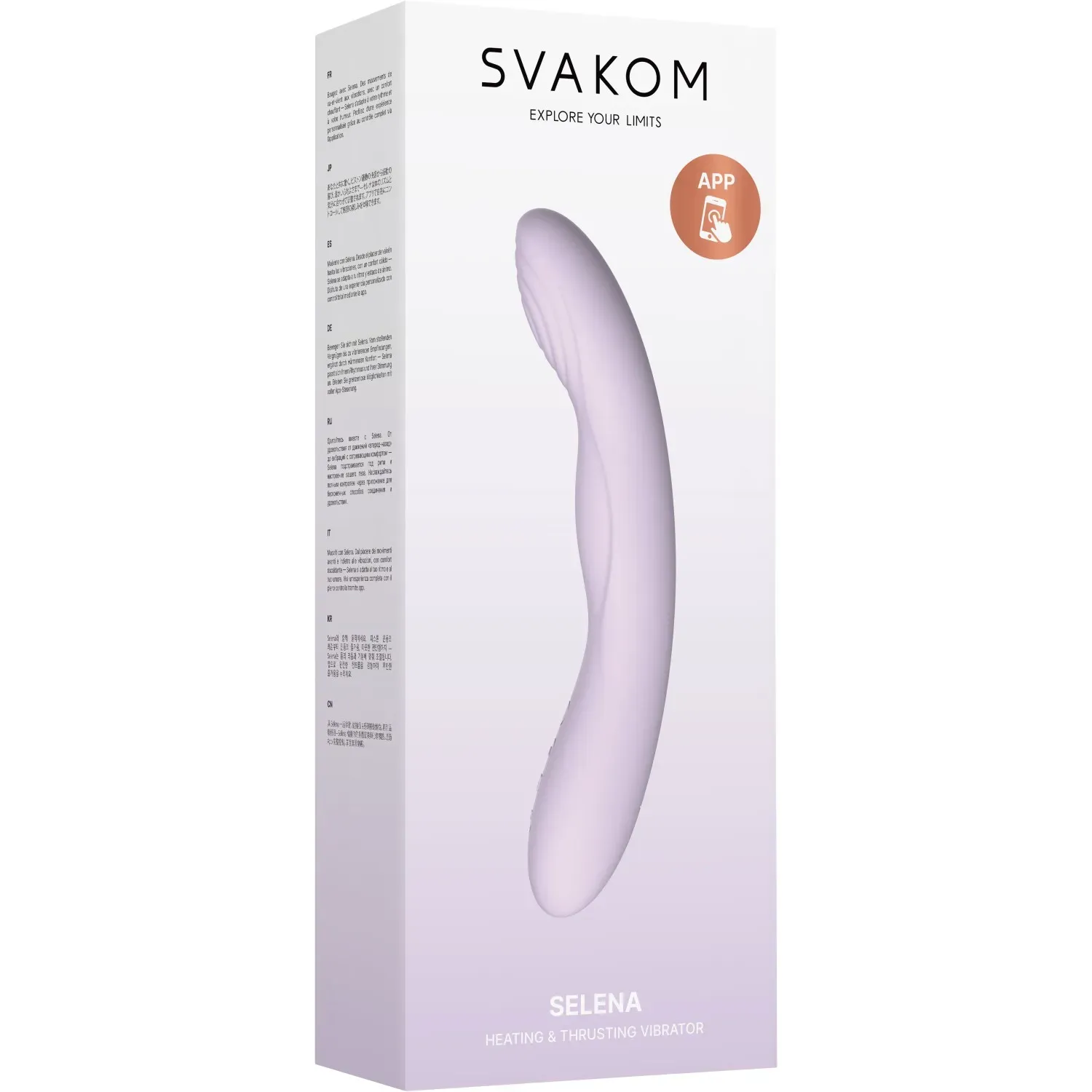 • Дополнительные преимущества: В комплект входит USB-зарядка. Selena полностью водостойка, что добавляет удобства и возможностей для использования в различных условиях. Возможность управления через приложения SVAKOM и KooSync.