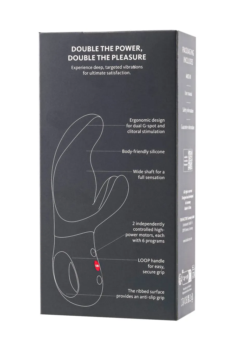 Два мощных мотора, уникальные ощущения: эргономичный дизайн MISS BI обеспечивает точную стимуляцию точки G и клитора для интенсивных оргазмов. Небольшой, гибкий рычаг идеально адаптируется к вашему телу, массируя клитор с предельной точностью, а широкий стержень — длиной 17 см и диаметром до 4 см — создает глубоко приятное ощущение наполненности. И кстати: благодаря двум независимо управляемым мощным моторам MISS BI позволяет легко переключаться между 6 программами вибрации и 6 скоростями, предоставляя вам бесконечные возможности для настройки вашего удовольствия.