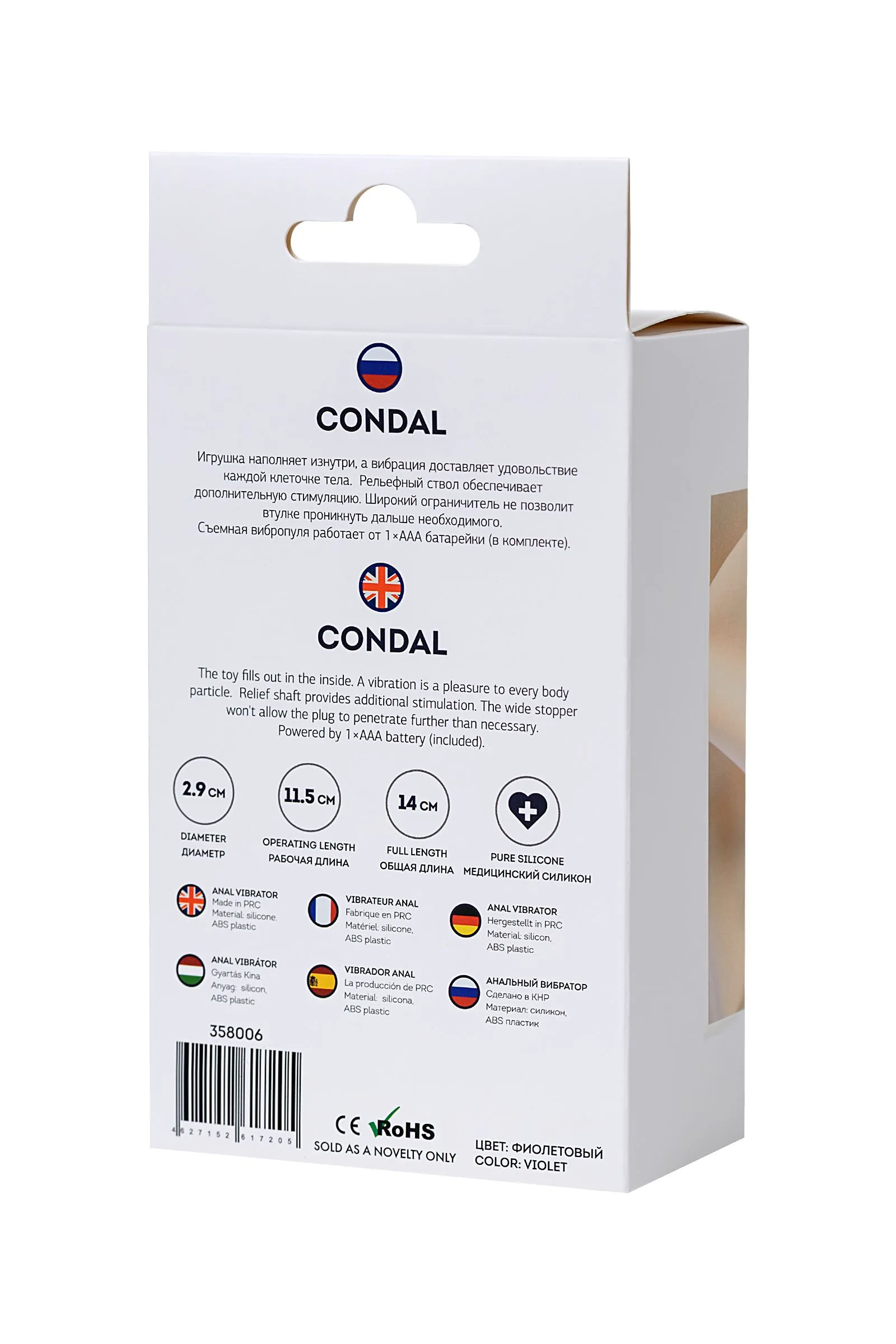Condal Игрушка наполняет изнутри, а вибрация доставляет удовольствие каждой клеточке тела. Рельефный ствол обеспечивает дополнительную стимуляцию. Широкий ограничитель не позволит втулке проникнуть дальше необходимого. Съемная вибропуля работает от 1×ААА батарейки (в комплекте).