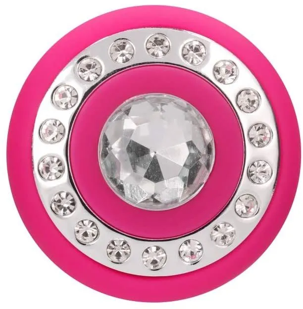 • стильный дизайн в розовом цвете с кнопкой, в виде сверкающего бриллианта, внутри инкрустированного стразами кольца