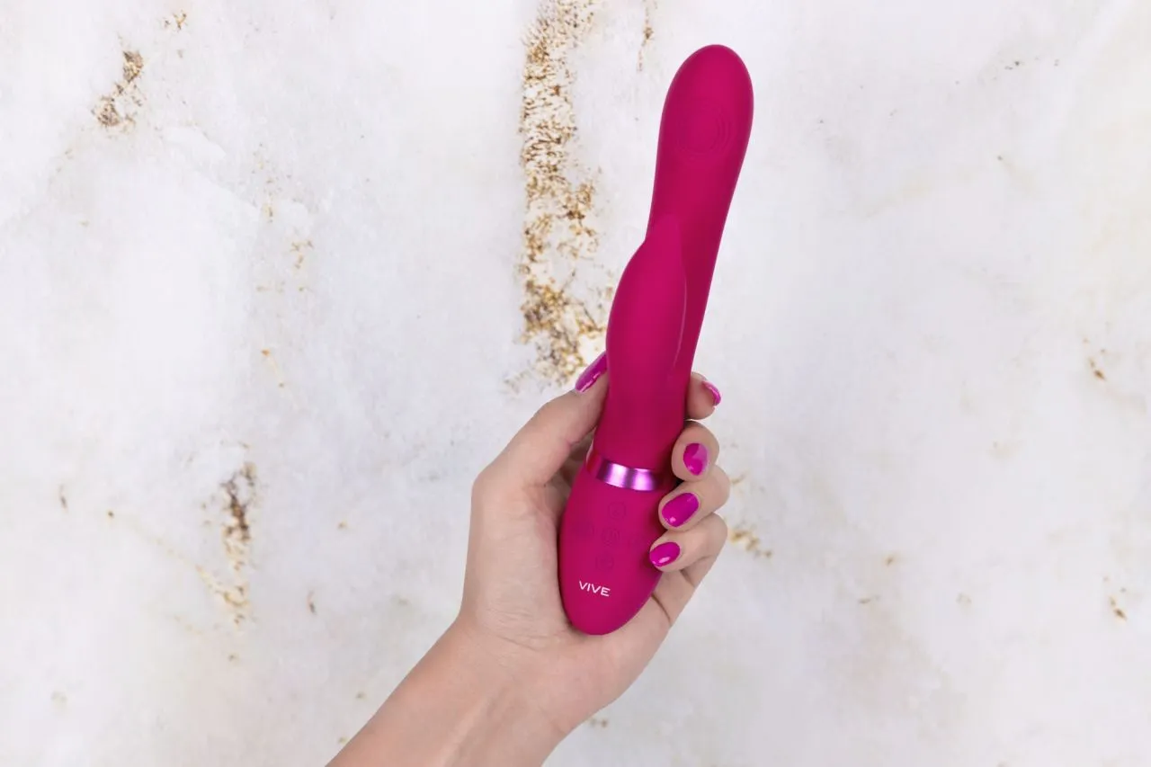 Изготовлено изделие из шелковистого медицинского (гипоаллергенного) силикона и как большинство моделей линейки VIVE имеет кнопку мгновенного оргазма, запуская все моторы на максимум одним касанием.