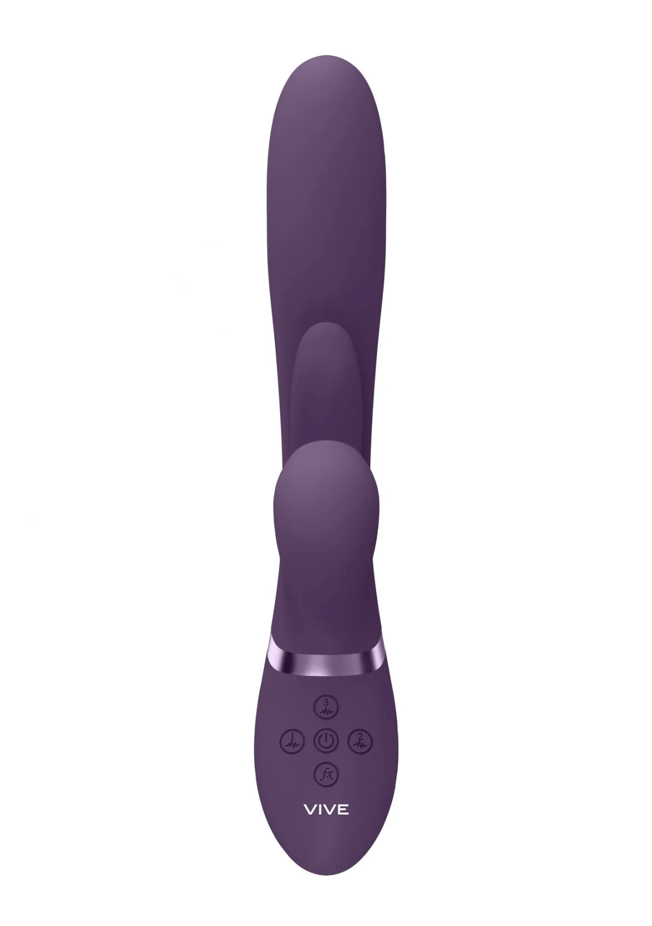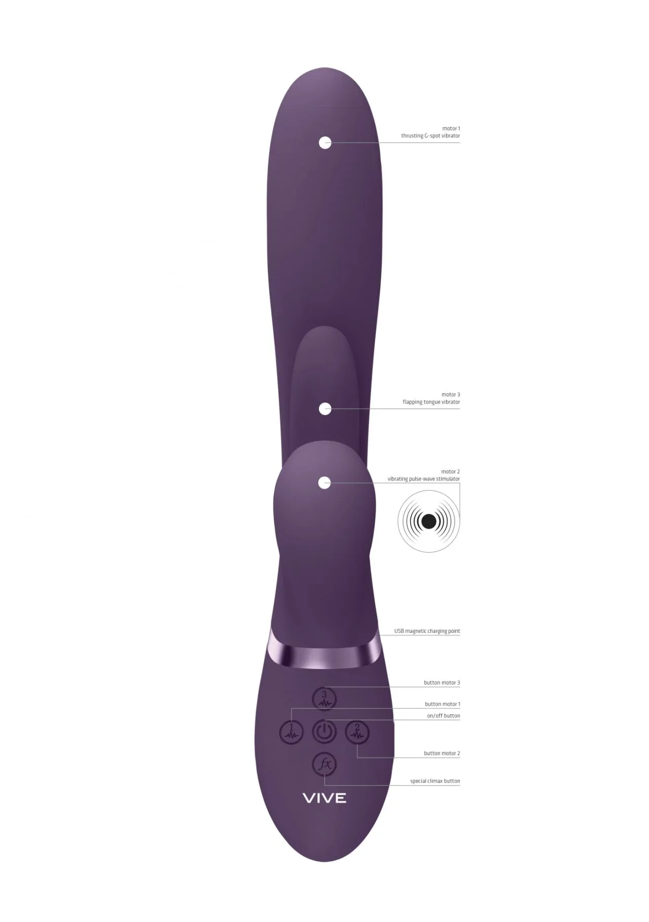 Изготовлено изделие из шелковистого медицинского (гипоаллергенного) силикона и как большинство моделей линейки VIVE имеет кнопку мгновенного оргазма, запуская все моторы на максимум одним касанием.