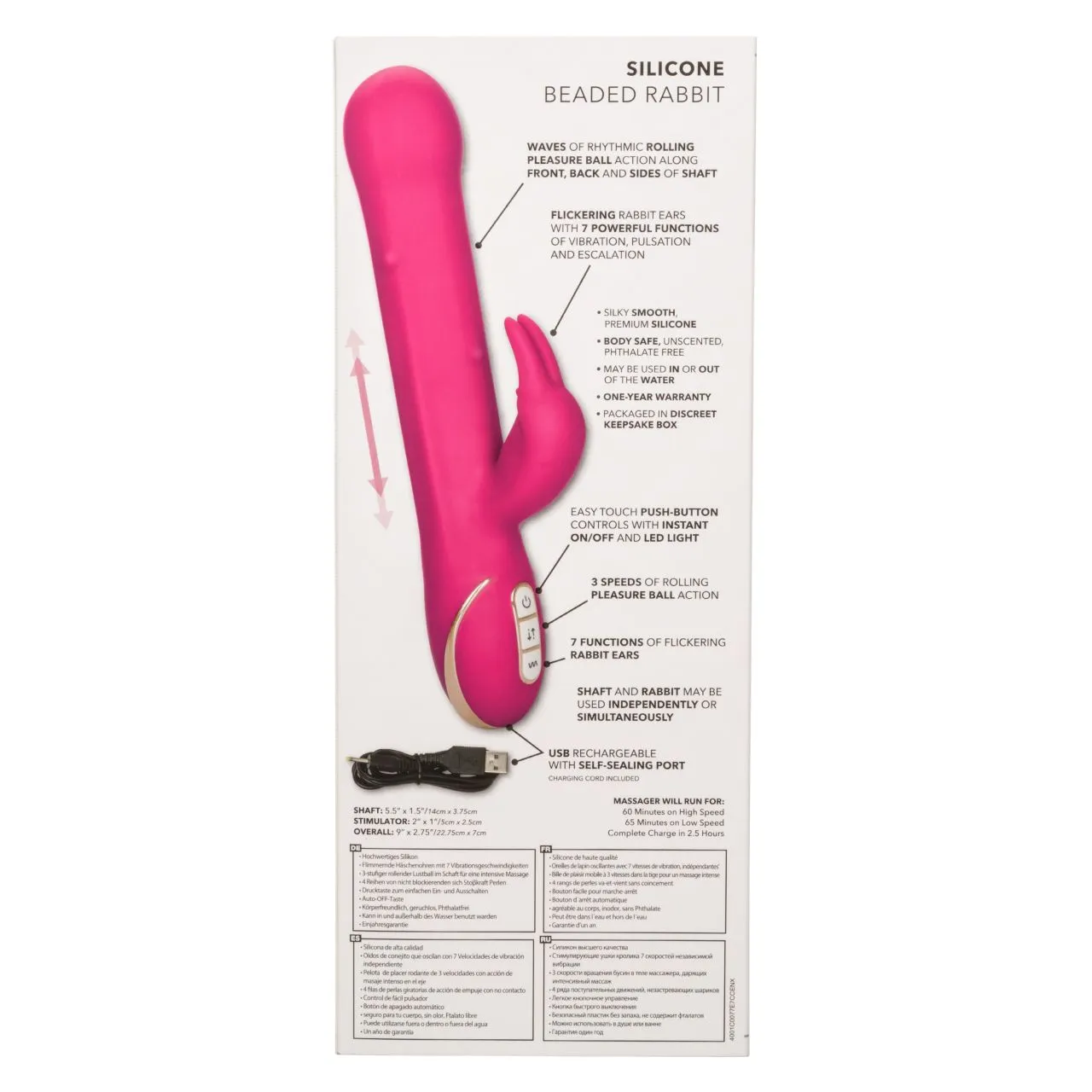Signature Beaded Rabbit – роскошный вибромассажер с функцией «катания бусинок». Особенностью этой линейки являеся собый мягкий и нежный силикон высшего качества, который создаёт уникальные ощущения от прикосновения и особым образом передает телу вибрации. Два самостоятельных мотора обеспечивают отдельно управление 7 идеальными функциями вибрации и 3 умопомрачительных скорости катания бусинок.