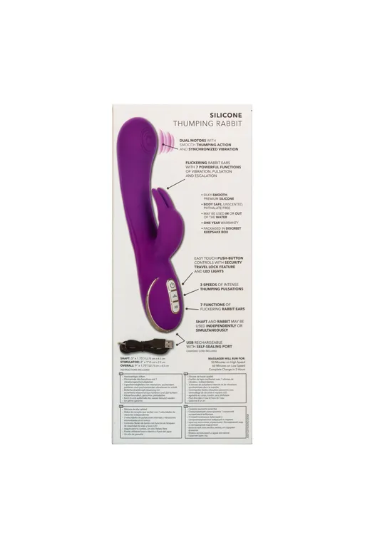 Вибромассажер Thumping Rabbit – роскошный вибромассажер с функцией «интенсивного пульсирующее воздействие». Особенностью этой линейки являеся собый мягкий и нежный силикон высшего качества, который создаёт уникальные ощущения от прикосновения и особым образом передает телу вибрации. Два самостоятельных мотора обеспечивают отдельно управление 7 идеальными функциями вибрации и 3 скоростями пульсации вала.