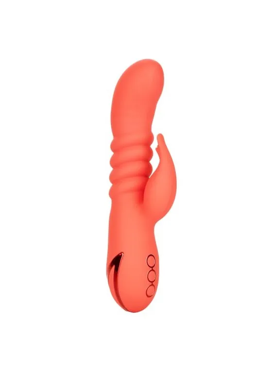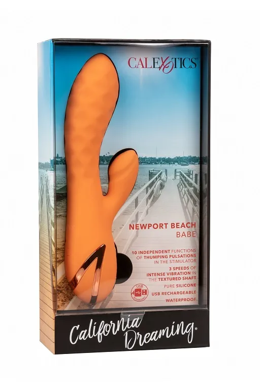 Вибромассажер Newport Beach Babe – перезаряжаемый мульти скоростной вибратор кролик из бесшовного материала с дополнительной обработкой. Вагинальный отросток у этой модели имеет текстурированную форму и 3 скорости «пульсирующего воздействия». Клиторальный отросток имеет отдельный мощный виброэлемент, обеспечивающий 10 режимов интенсивной вибрации.