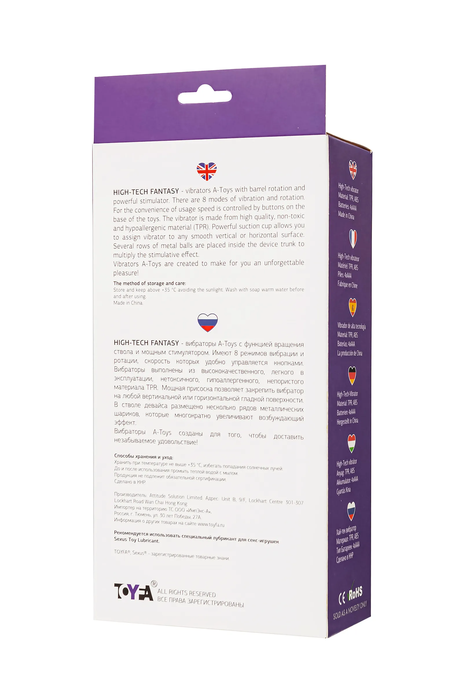 High-Tech fantasy - вибраторы A-Toys с функцией вращения ствола и мощным клиторальным стимулятором. Имеют 8 режимов вибрации и ротации, скорость которых удобно управляется кнопками на рукояти игрушки. Вибраторы выполнены из высококачественного, легкого в эксплуатации, нетоксичного, гипоаллергенного, непористого материала TPR. Мощная присоска позволяет закрепить вибратор на любой вертикальной или горизонтальной гладкой поверхности. В стволе девайса размещено несколько рядов металлических шариков, которые многократно увеличивают возбуждающий эффект. Вибраторы A-Toys созданы для того, чтобы доставить незабываемое удовольствие! Рабочая длина 15,5 см.