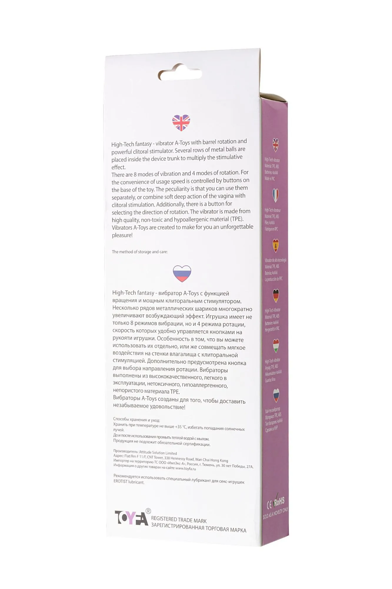 High-Tech fantasy - вибратор A-Toys с функцией вращения и мощным клиторальным стимулятором. Несколько рядов металлических шариков многократно увеличивают возбуждающий эффект. Игрушка имеет не только 8 режимов вибрации, но и 4 режима ротации, скорость которых удобно управляется кнопками на рукояти игрушки. Особенность в том, что вы можете использовать их отдельно, или же совмещать мягкое воздействия на стенки влагалища с клиторальной стимуляцией. Дополнительно предусмотрена кнопка для выбора направления ротации. Вибраторы выполнены из высококачественного, легкого в эксплуатации, нетоксичного, гипоаллергенного, непористого материала TPЕ. Вибраторы A-Toys созданы для того, чтобы доставить незабываемое удовольствие!