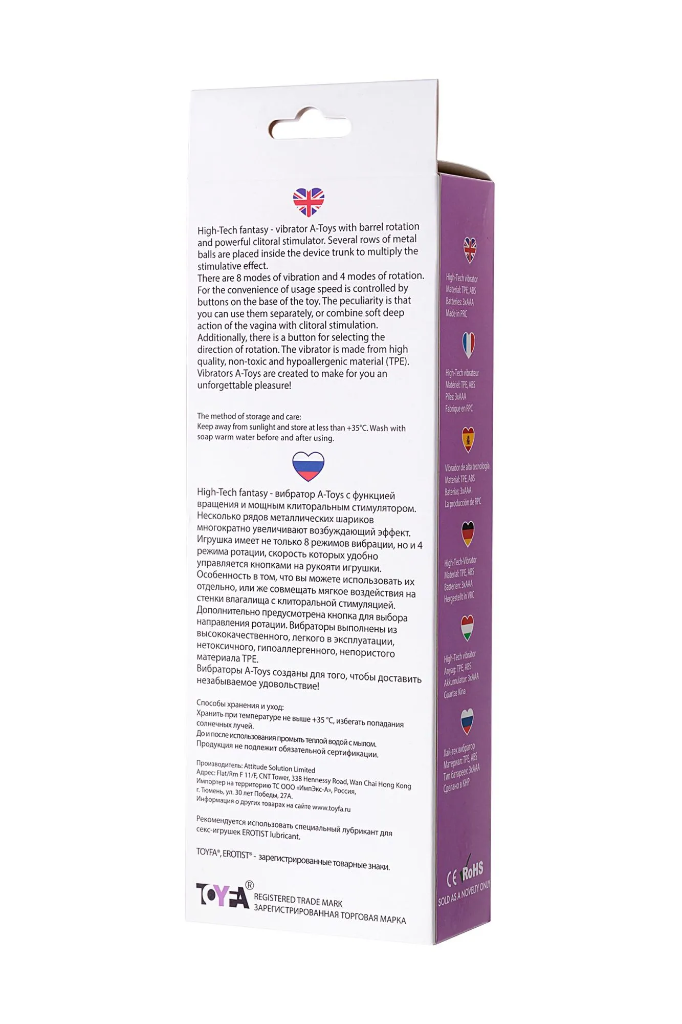 High-Tech fantasy - вибратор A-Toys с функцией вращения и мощным клиторальным стимулятором. Несколько рядов металлических шариков многократно увеличивают возбуждающий эффект. Игрушка имеет не только 8 режимов вибрации, но и 4 режима ротации, скорость которых удобно управляется кнопками на рукояти игрушки. Особенность в том, что вы можете использовать их отдельно, или же совмещать мягкое воздействия на стенки влагалища с клиторальной стимуляцией. Дополнительно предусмотрена кнопка для выбора направления ротации. Вибраторы выполнены из высококачественного, легкого в эксплуатации, нетоксичного, гипоаллергенного, непористого материала TPЕ. Вибраторы A-Toys созданы для того, чтобы доставить незабываемое удовольствие!