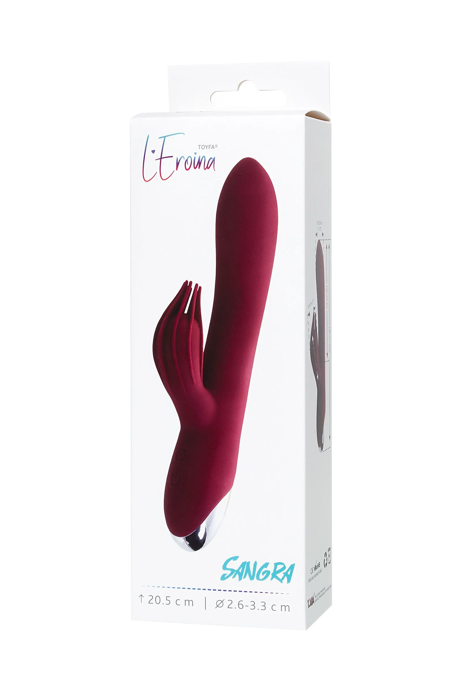 Вибратор SANGRA создан для того чтобы удовлетворить все ваши желания и воплотить в жизнь самые смелые фантазии. Мягкая середина девайса позволяет ему слегка гнутся, так что вы без труда найдете идеальный угол для стимуляции, а нежные ворсинки на клиторальном отростке удвоят удовольствие. Для удобства использования кнопки устройства подсвечиваются во время включения и в процессе работы. К вашим услугам десять режимов вибрации и два мощных мотора. Изготовлен из легкого в эксплуатации, нетоксичного, гипоаллергенного силикона. Вибратор SANGRA от L’EROINA идеально подходит для начинающих и опытных пользователей! Общая длина: 20,5 см Рабочая длина: 13 см Диаметр: 2,6-3,3 см Клиторальная стимуляция 2 мощных мотора Подсветка кнопок Бесшумность