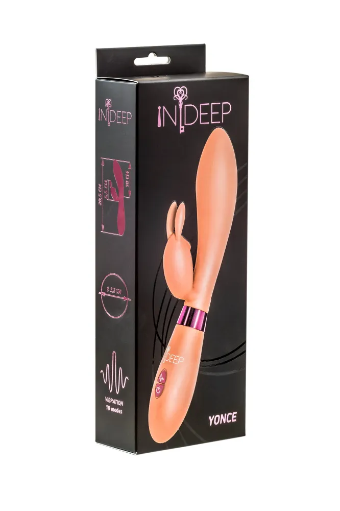 Вибромассажер Yonce, изготовленный из безопасного медицинского силикона, имеет 10 режимов вибрации и два моторчика, расположенные в основной рабочей части и в клиторальном отростке массажера. Моторчики способны одновременно воздействовать на самые эрогенные зоны, вызывая приятные ощущения. Вы можете использовать Yonce как самостоятельно, так и в паре с партнером во время прелюдии для разнообразия интимной жизни. Характеристики: общая длина- 20,5 см, рабочая длина- 10 см, максимальный диаметр- 3,3 см, длина отростка- 6,5 см, максимальный диаметр отростка- 2,2 см. Работает от 2ААА батареек (не входят в комплект).
