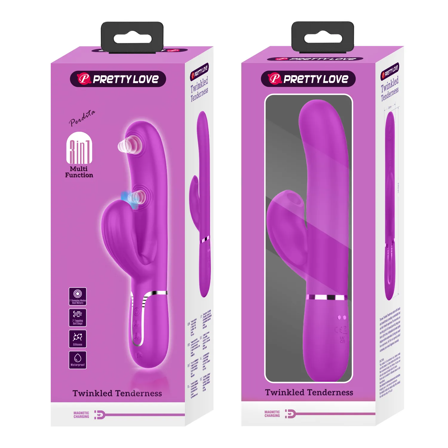 Многофункциональный вибратор-кролик Twinkled Tenderness сочетает в себе 7 режимов постукивания и 7 режимов ударных вибраций, что позволяет получить разнообразные ощущения. Длина игрушки составляет 22,8 см, диаметр — 3,4 см, длина рабочей части — 12 см. Вибратор выполнен из силикона и ABS-пластика, обеспечивая приятные тактильные ощущения и полностью водонепроницаемую конструкцию, что позволяет использовать его как в спальне, так и в ванной. Оснащён магнитной USB зарядкой, что делает его всегда готовым к использованию. Вес изделия составляет 199 грамм.