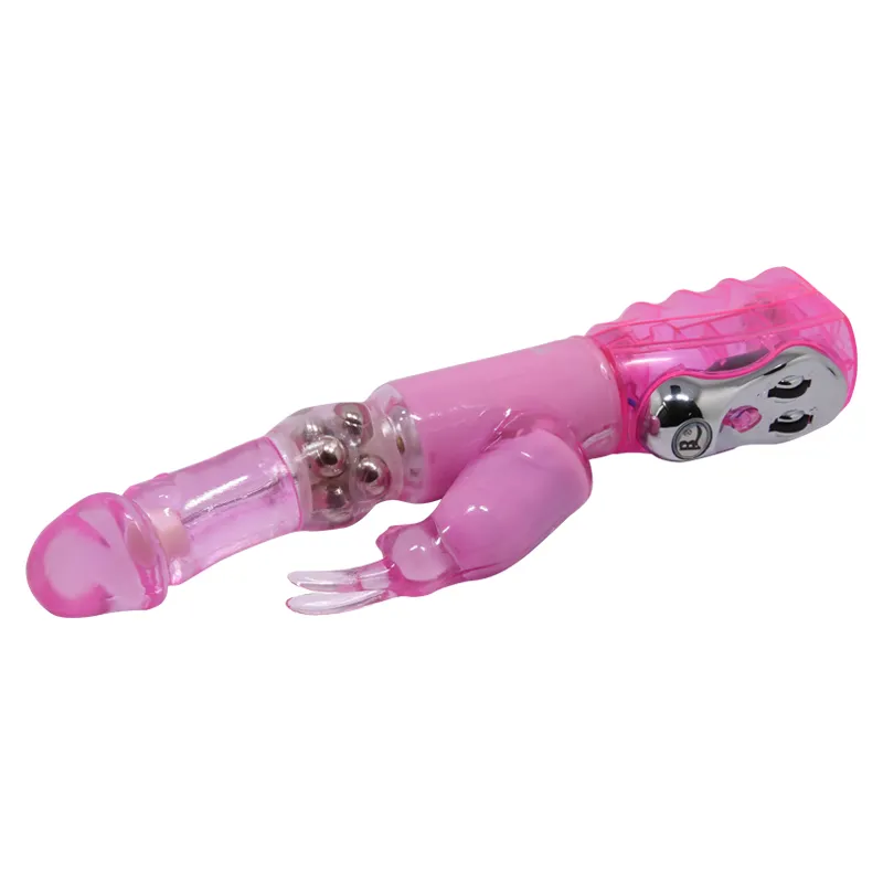 Розовый Хай-Тек вибратор с функцией вращения ствола. Имеет отросток в виде зайчика. Материал изготовления- TPR (Термопластичная резина). Работает от 4-х батареек типа AA. Общая длина-26,5 см, рабочая 13 см, длина клиторального стимулятора-9,2 см, максимальный диаметр -3,6 см. Упаковка-блистер