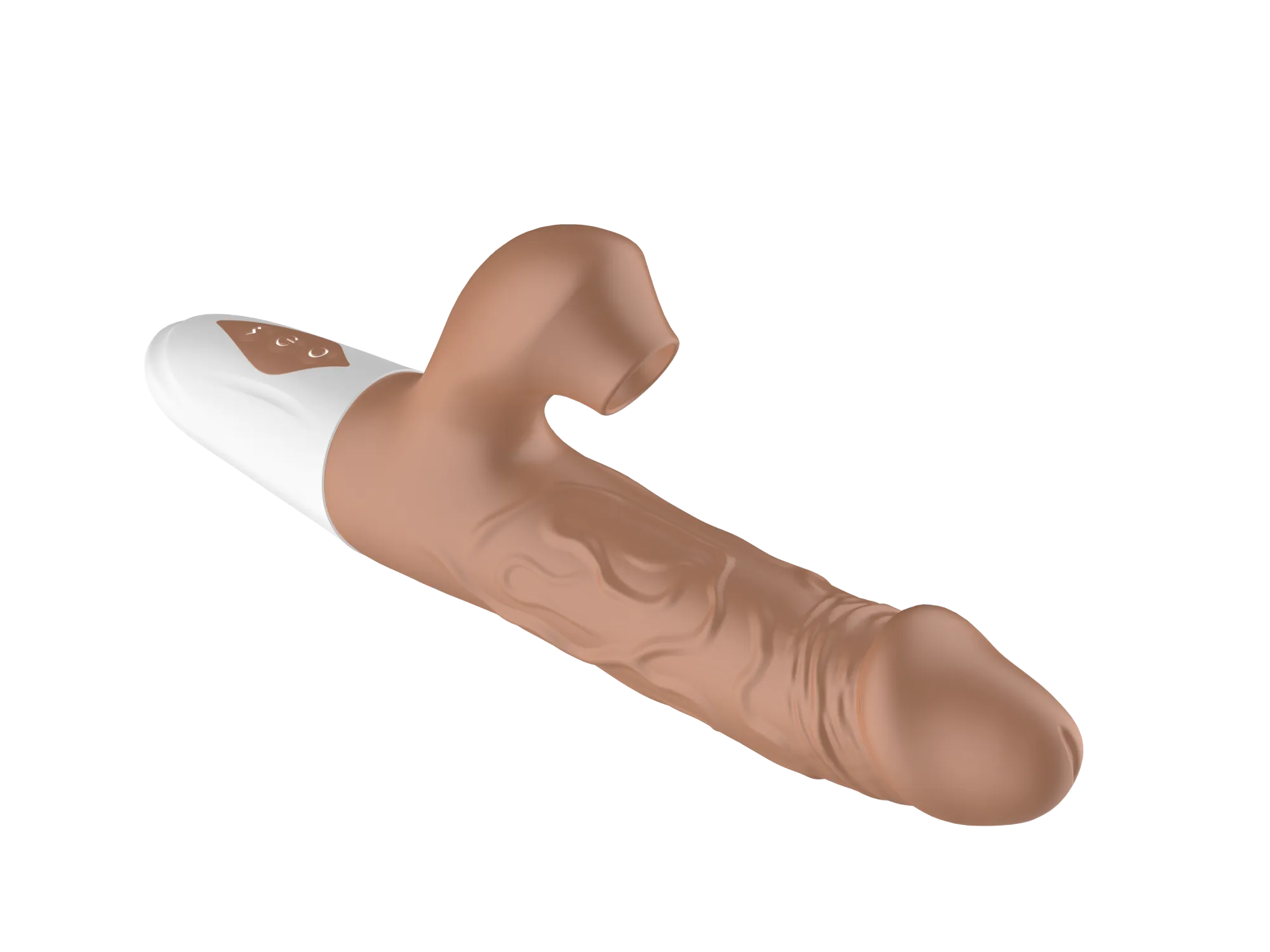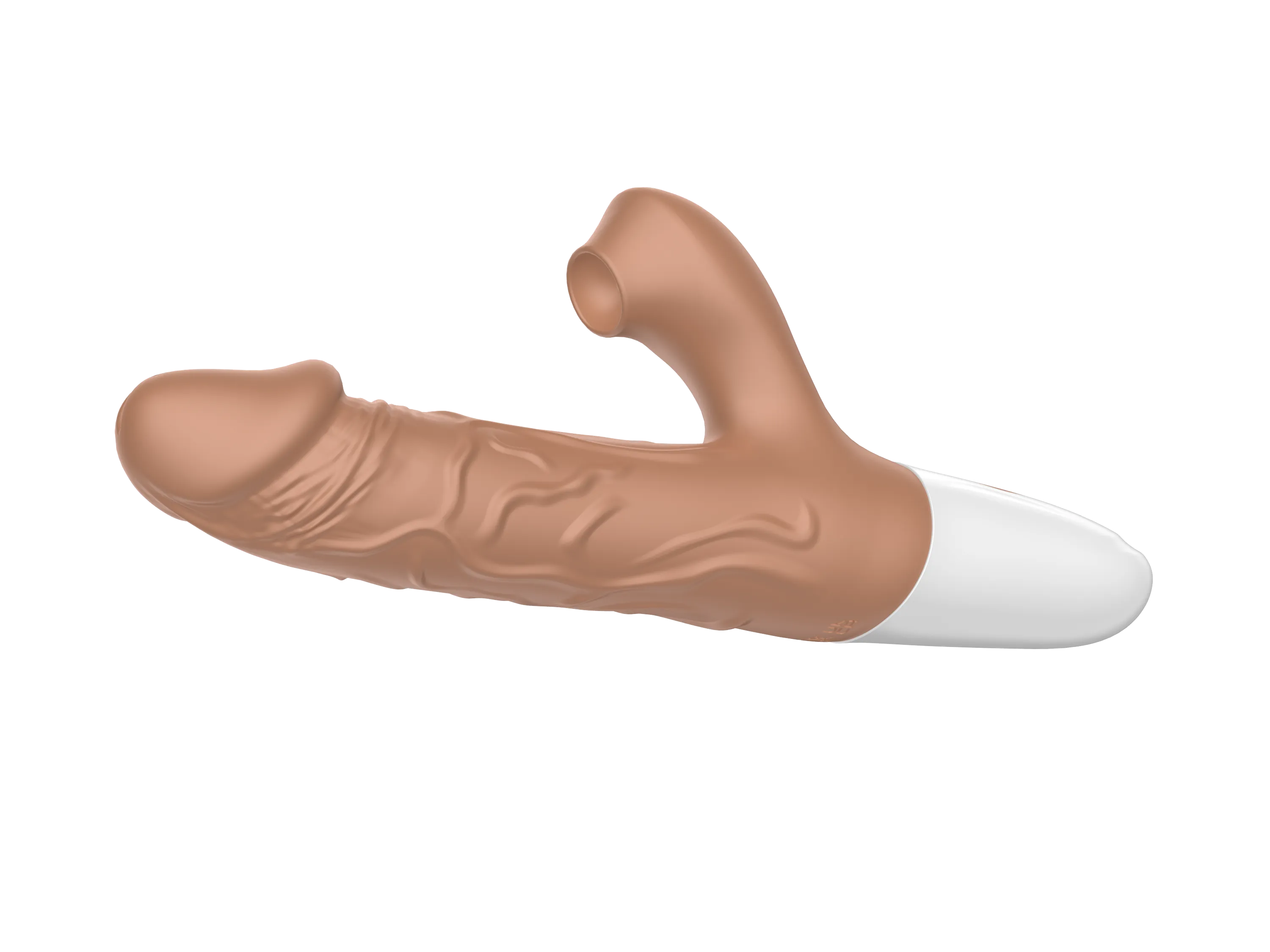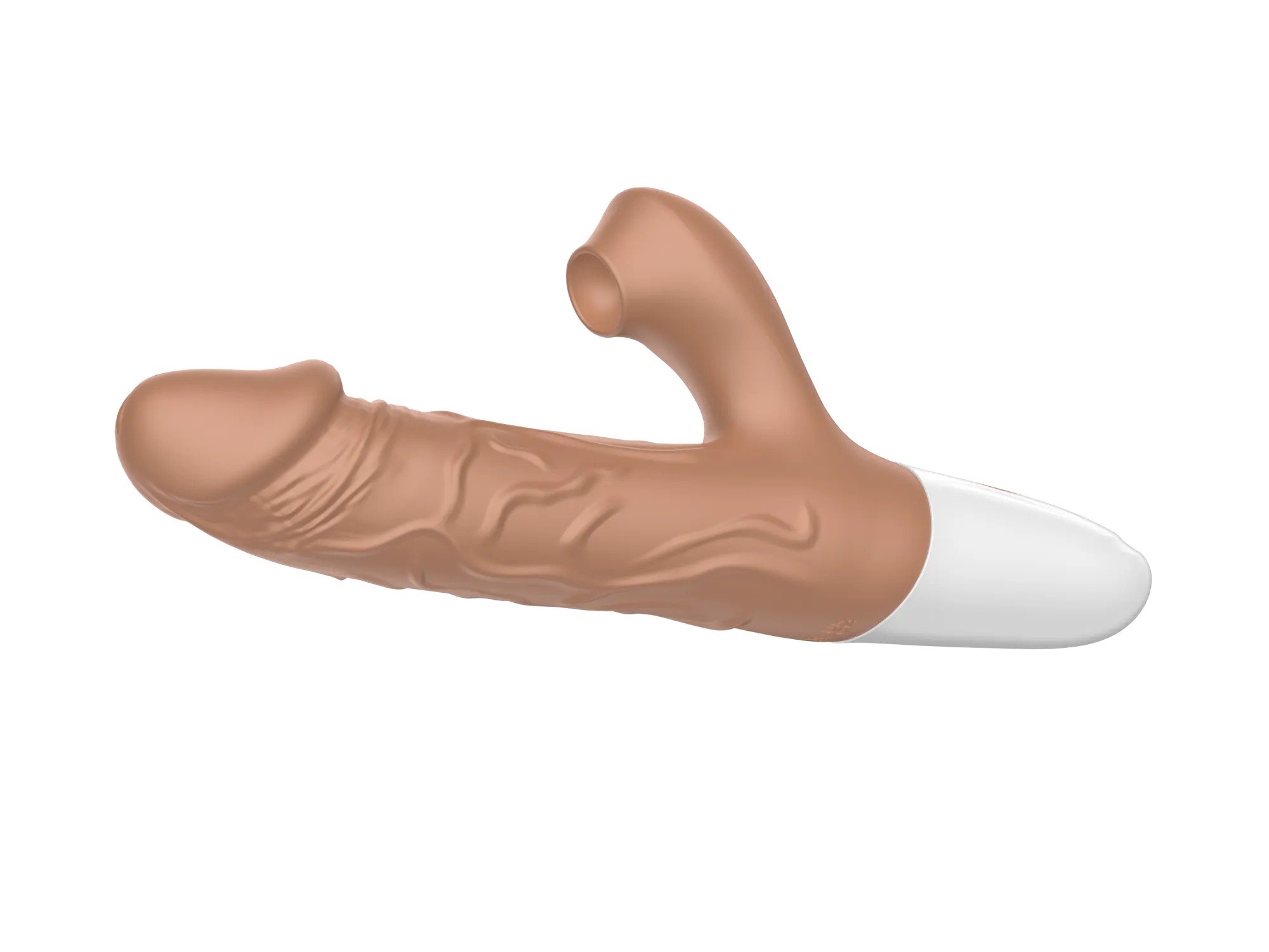 Вибратор-кролик в реалистичном дизайне в виде мужского пениса с текстурированными венами для большей стимуляции. Вибратор оснащен 10 режимами вибрации, 3 режимами пенетрации и 7 режимами сосания, что позволяет подобрать идеальную комбинацию для любого настроения. Изготовленный из мягкого и безопасного силикона с ABS-пластиком, вибратор приятен на ощупь и гипоаллергенен. Водонепроницаемость IPX7. Вес: 222 г., размеры: 225*90*40 мм. Длина клиторального отростка - 5см, ширина - 2,7см, диаметр раструба - 1,5см. Устройство оснащено перезаряжаемой литиевой батареей, которая обеспечивает до 45 минут работы. При этом уровень шума не превышает 50 дБ, гарантируя тихую и дискретную эксплуатацию.