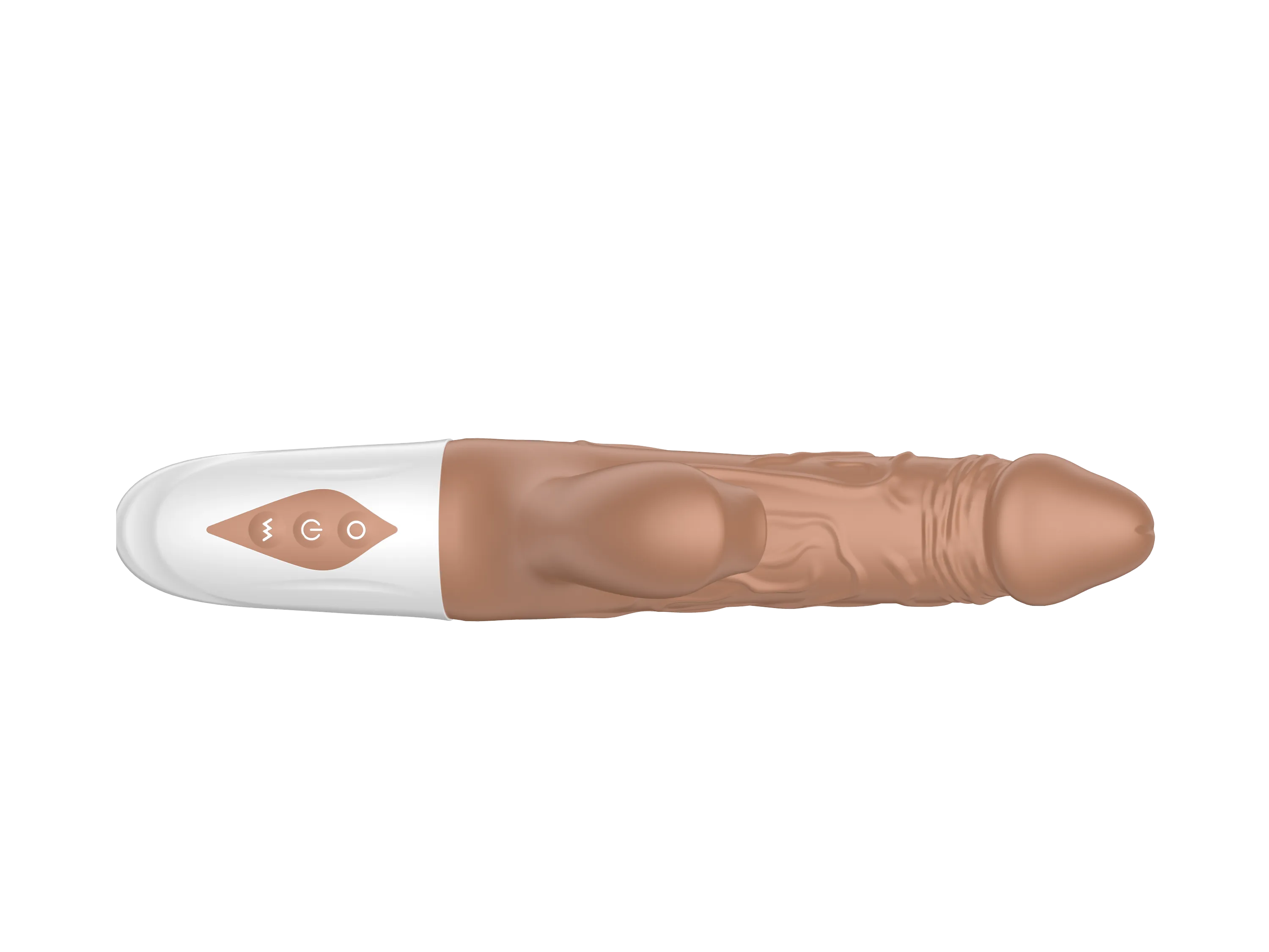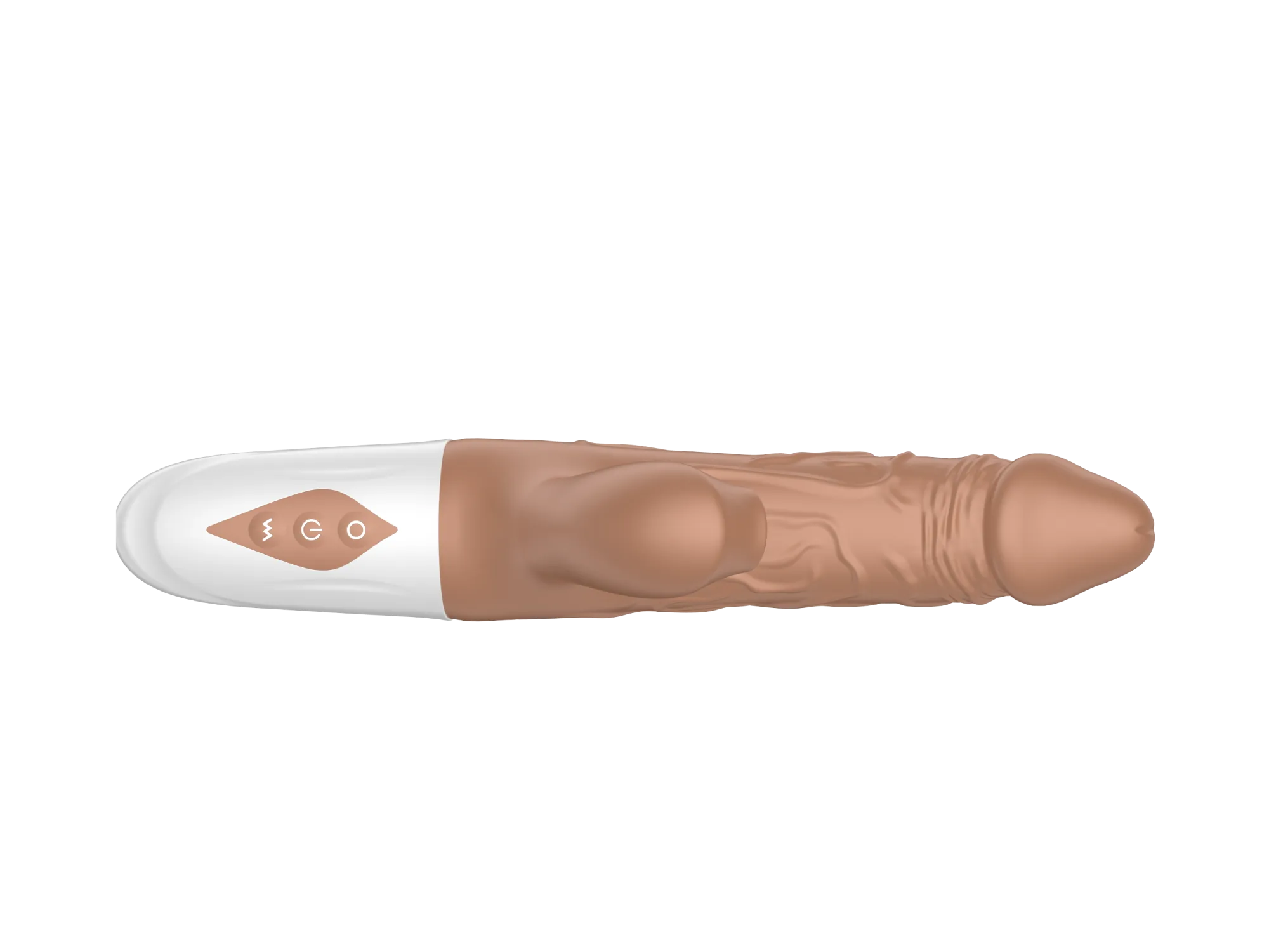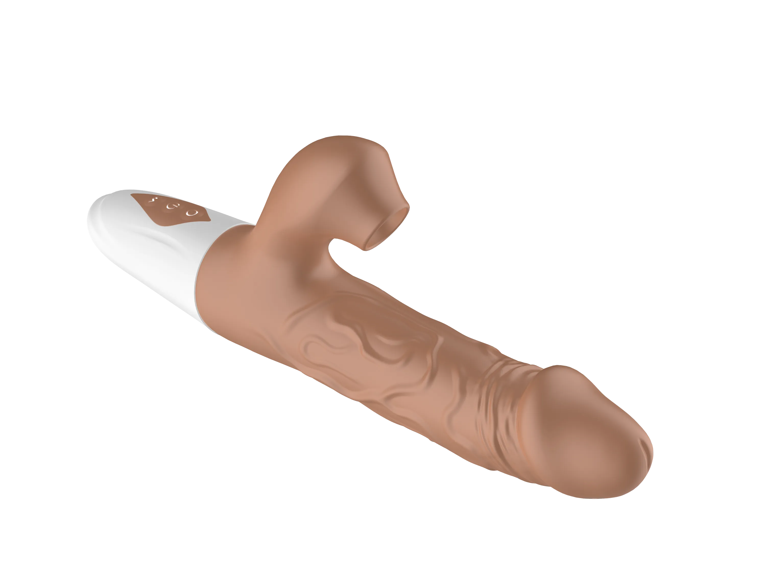 Вибратор-кролик в реалистичном дизайне в виде мужского пениса с текстурированными венами для большей стимуляции. Вибратор оснащен 10 режимами вибрации, 3 режимами пенетрации и 7 режимами сосания, что позволяет подобрать идеальную комбинацию для любого настроения. Изготовленный из мягкого и безопасного силикона с ABS-пластиком, вибратор приятен на ощупь и гипоаллергенен. Водонепроницаемость IPX7. Вес: 222 г., размеры: 225*90*40 мм. Длина клиторального отростка - 5см, ширина - 2,7см, диаметр раструба - 1,5см. Устройство оснащено перезаряжаемой литиевой батареей, которая обеспечивает до 45 минут работы. При этом уровень шума не превышает 50 дБ, гарантируя тихую и дискретную эксплуатацию.