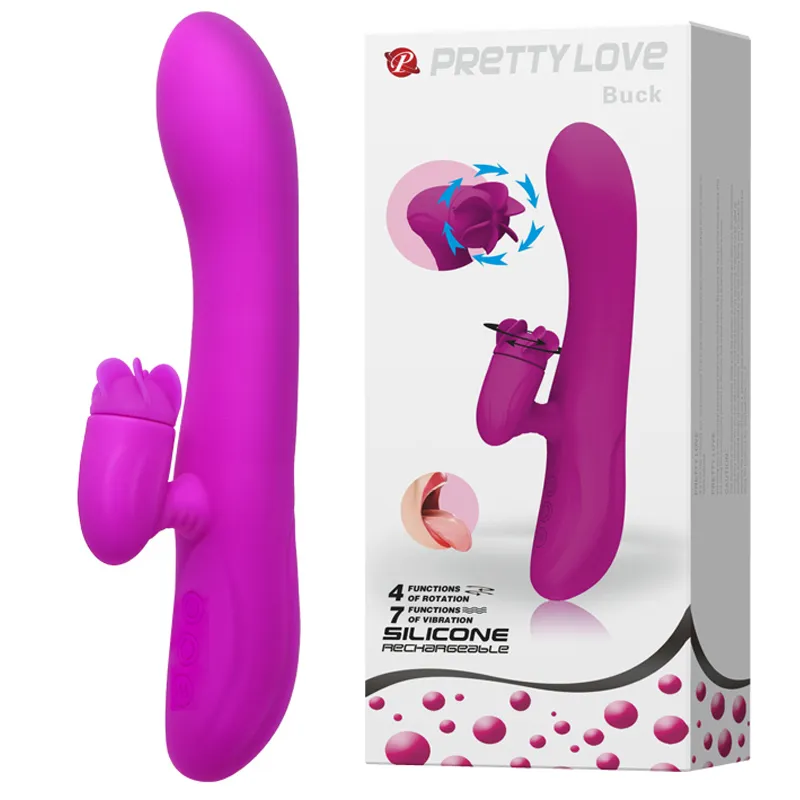 Силиконовый вибратор c клиторальным отростком с рельефной поверхностью в виде лепестков. Имеет 7 режимов вибрации и 4 режима ротации клиторального стимулятора, лёгкое управление при помощи кнопок в основании. Имеет два моторчика. Материал изготовления- силикон. Общая длина-21 см, рабочая длина- 12,5 см,максимальный диаметр-3,5 см.Длина клиторального отростка-5,5 см,диаметр-2,3 см. Зарядка происходит от USB (в комплекте), имеется так же мешочек для хранения.