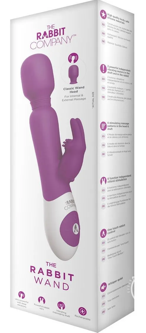 The Rabbit Wand представляет собой два самых популярных вибратора (Wand и кролик), которые были совмещены в один многофункциональный вибратор от компании The Rabbit Company. Крупная и упругая головка игрушки обеспечит мощную стимуляцию вагины или внешних эрогенных зон, а небольшой отросток в виде кролика - интенсивную стимуляции клитора.
