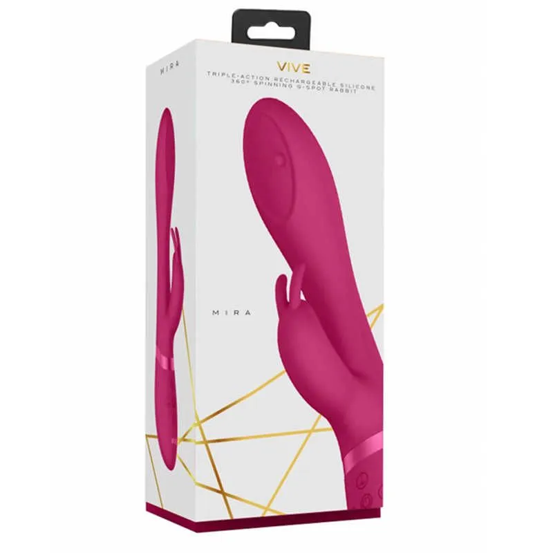 Mira – необычный вибромассажер-кролик с вращающимся шариком на вагинальном отростке. Он изготовлен из высококачественного, мягкого, нежного на ощупь 100% медицинского силикона с пылеотталкивающими свойствами и прочного, элегантного АБС-пластика.