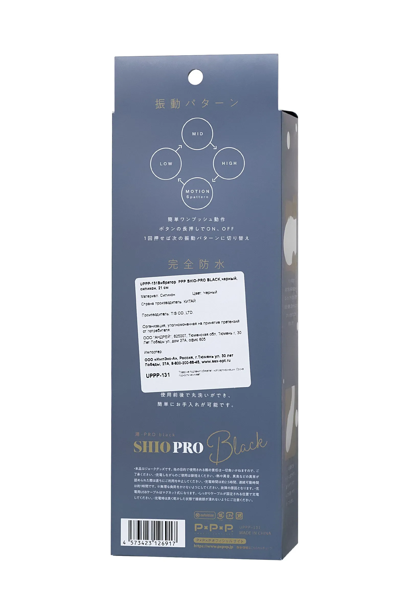 Восхитительный вибратор SHIO-PRO BLACK от японского бренда PPP способен удивить вас и подарить незабываемое наслаждение! Отличительная особенность - выраженная гнущаяся головка с короткими щетинками. Используйте его для стимуляции эрогенных зон, клитора и зоны G. С SHIO-PRO BLACK достигать оргазма и сквирта стало проще и быстрее благодаря рельефной гибкой головке и 6 режимам вибрации. Среди прочих достоинств водонепроницаемость уровня IPX7 – это значит, что можно играть с SHIO-PRO BLACK в душе и ванной. материал – силикон водонепроницаемый – IPX7 заряжается от USB-кабеля размеры 21 см х 4см х 4см цвет – черный страна бренда – Япония