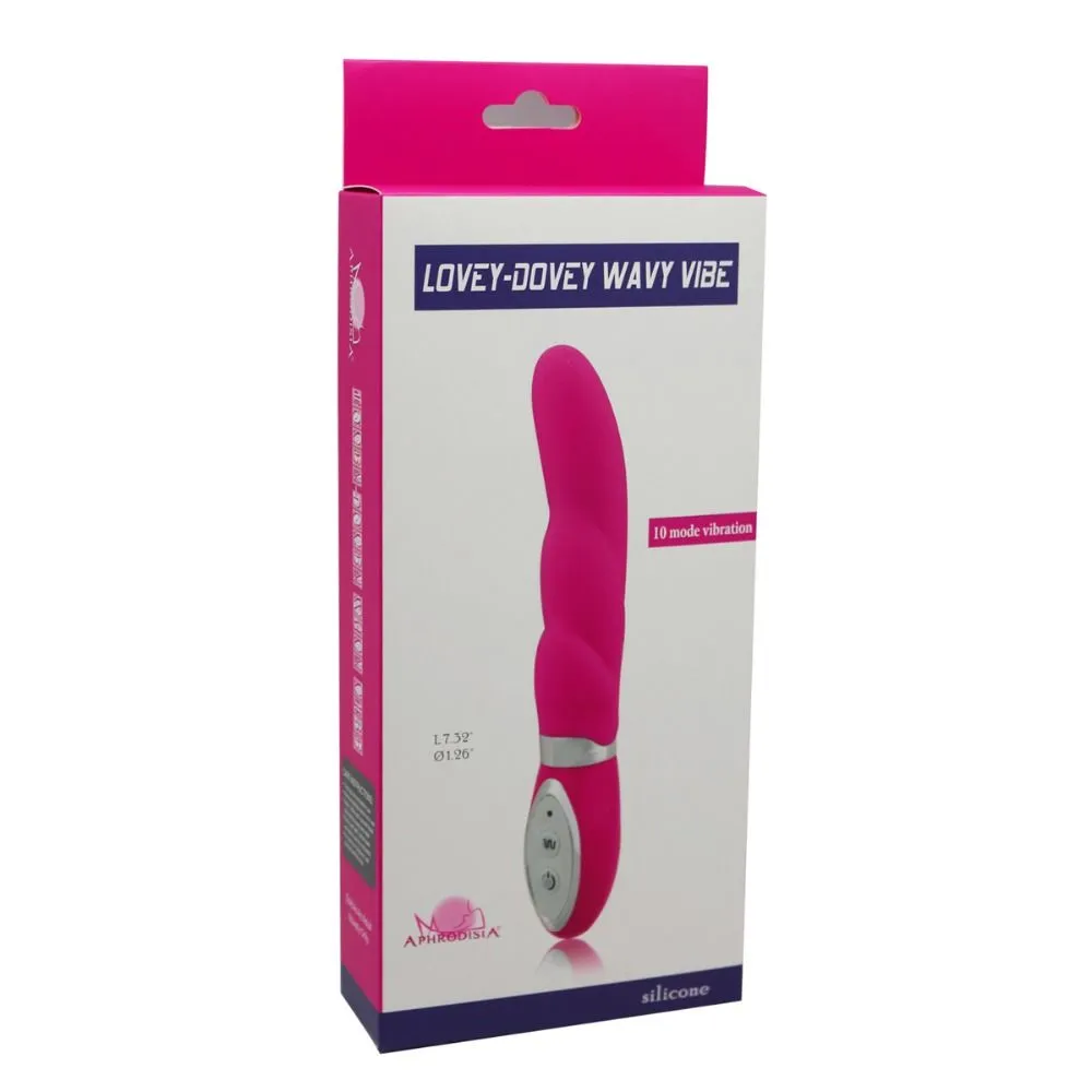 Lovey-Dovey Wavy Vibe - это многоскоростной вибратор, который заставит Ваше сердце биться чаще и доставит массу ярких эмоций. У вибратора есть 10 режимов вибрации, среди которых Вы сможете выбрать режим, подходящий именно Вам, или экспериментировать, постоянно испытывая новые будоражущие ощущения. Благодаря своей изогнутой головке, игрушка способна простимулировать точку G, вознося Вас на вершины блаженства.