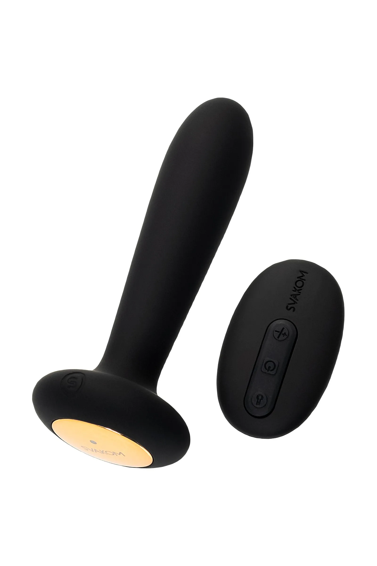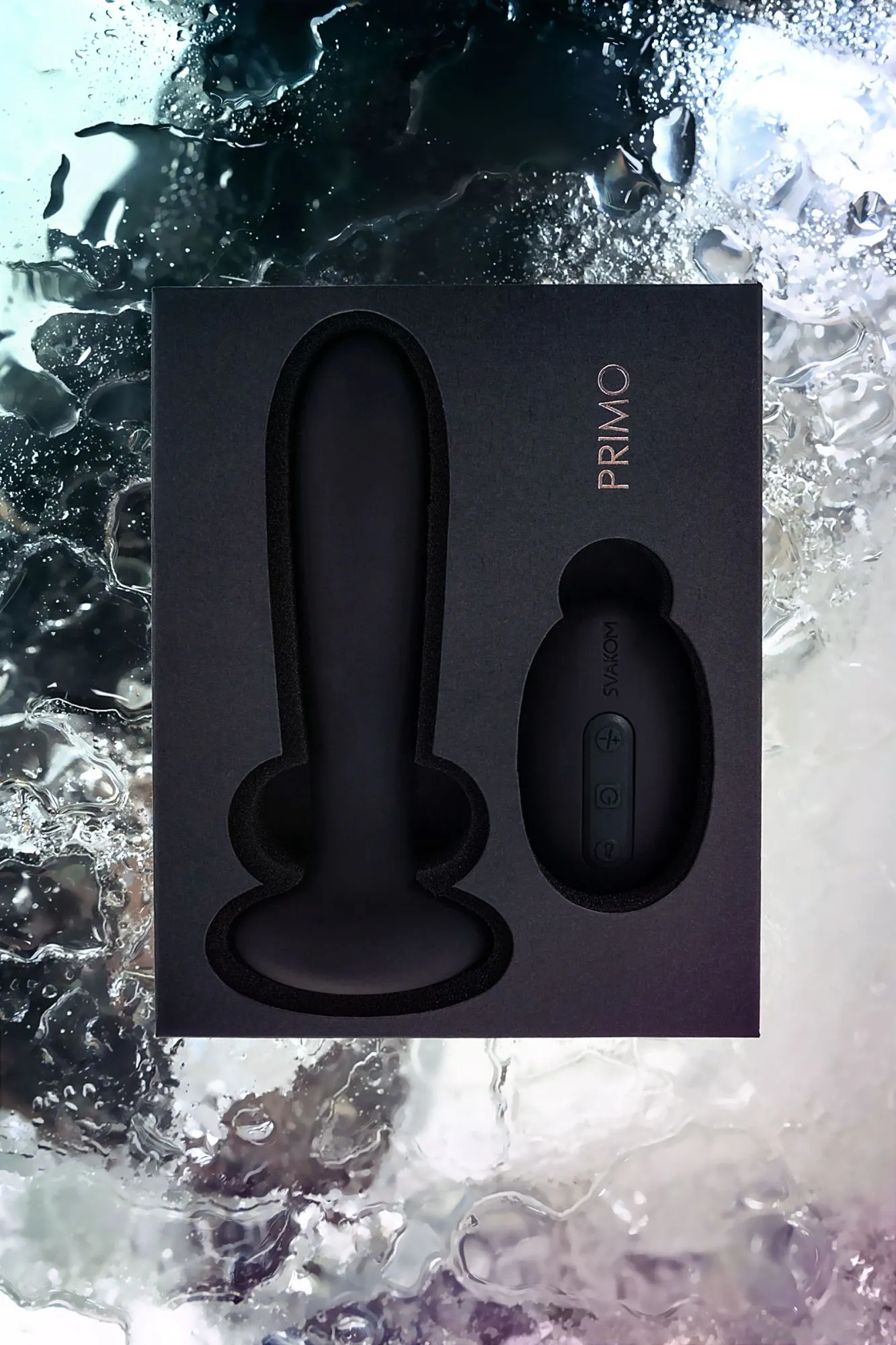 Primo Svakom — это интеллектуальная анальная вибропробка из силикона с нагревом и пультом дистанционного управления. Этот очень тихий, практически бесшумный анальный вибратор можно также использовать и для стимуляции зоны «G», если физиологически подходит. Но основная его функция — анальная стимуляция, для подготовки к анальному сексу либо для целенаправленной анальной стимуляции. Если нужно использовать анальную пробку в процессе вагинального секса для усиления ощущений обоих партнеров, то Svakom Primo прекрасно справится с этой ролью, а нагрев до 38 градусов по Цельсию и пульт ДУ раскрасят использование новыми оттенками удовольствия. Есть у Svakom Primo интересная деталь, он нагревается с того момента, как вы начинаете свою игру, его температура поднимается до 38 градусов по Цельсию и расслабляющее тепло начинает разноситься по вашему телу вместе с вибрацией. Только представьте, насколько возбуждающе приятна такая игра. Primo имеет 5 различных режимов, и 5 интенсивности в каждом режиме, поэтому у вас есть 5 х 5 = 25 вариаций режимов. Сделан из абсолютно безопасного, гипоаллергенного и нежного на ощупь силикона. Заряжается от аккумулятора в течение 2 часов, после чего способен непрерывно работать 1 час. Primo Svakom всегда готов доставить удовольствие. Водонепроницаемый, с ним можно использовать любые лубриканты на водной основе. Характеристики: Длина — 12 см; Диаметр — 2,6 см; Кол-во режимов вибрации — 5; Элементы питания — встроенный аккумулятор; Время зарядки 2 часа, время работы 1 час; Вес — 86 грамм.