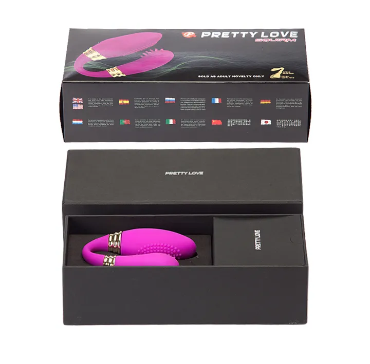 Вибратор для двоих Pretty Love Purple BI-014125 Двойной вибратор BI-014125 – изысканный, соблазнительный, возбуждающий, с особой поверхностью для самых страстных ласк клитора и стимуляции точки G. Секс-игрушка обладает 7 режимами вибрации. На внутреннем стимуляторе расположены соблазнительные щетинки, которые будут сладко щекотать вагину внутри, на внешнем отростке разместились мелкие пупырышки для клиторальных наслаждений. Двойной вибратор имеет стильную ручку, украшенную «браслетами», пользоваться подобным массажером – сплошное удовольствие. Секс-игрушка укомплектована адаптером для простоты зарядки аккумулятора. Характеристики вибратор для двоих Pretty Love Purple BI-014125: цвет – пурпурный, материал – силикон с велюровым покрытием, длина наружного стимулятора – 10 см, диаметр – 3 см, длина внутреннего стимулятора – 8,5 см, диаметр – 2,5 см, производитель – Baile (Китай). Вес игрушки: 67 гр. Упаковка: картонная коробка с принтом.