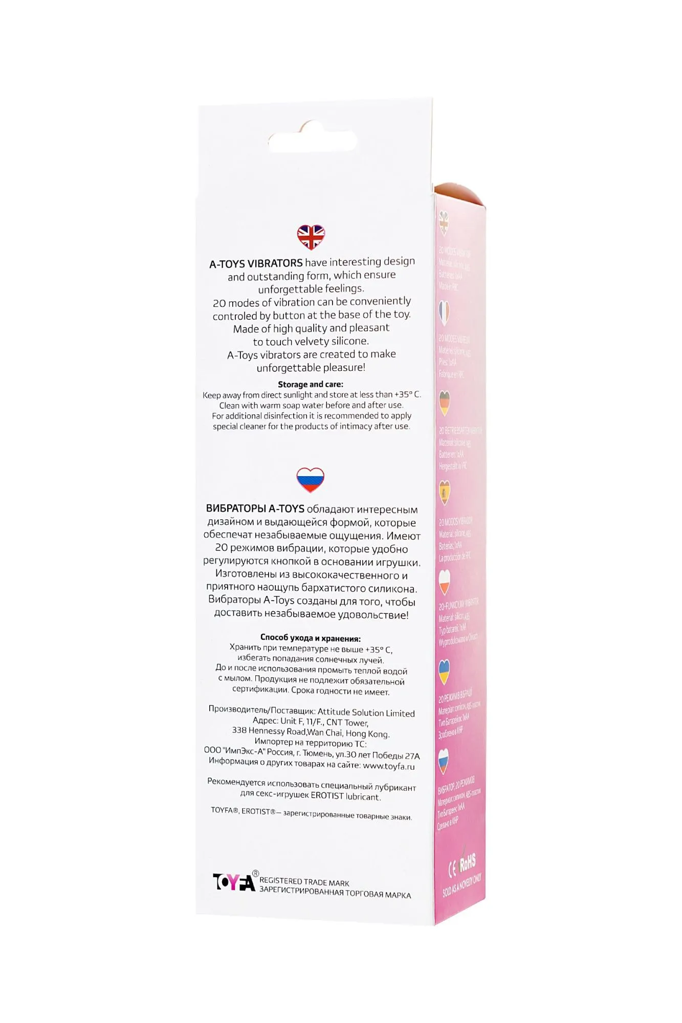 Вибраторы A-Toys — обладают интересным дизайном и выдающейся формой, которые обеспечат незабываемые ощущения. Имеют 20 режимов вибрации, которые удобно регулируются кнопкой в основании игрушки. Изготовлены из высококачественного и приятного наощупь, бархатистого силикона. Вибраторы A-Toys созданы для того, чтобы доставить незабываемое удовольствие!