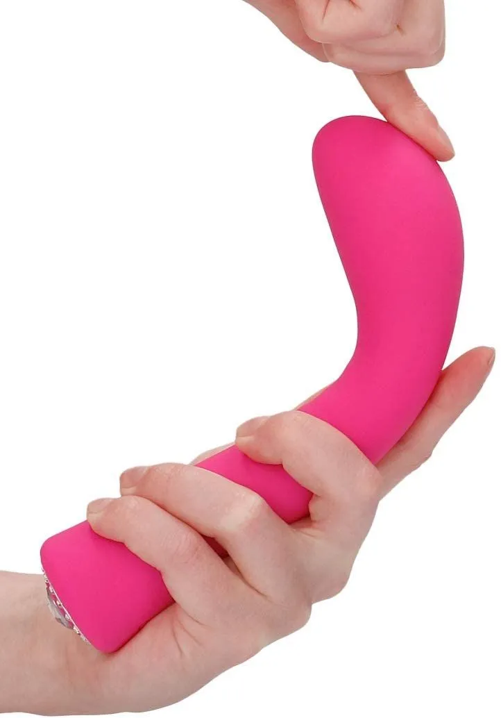 Вибратор Discretion G-spot Glimmer от бренда Shots Media обладает загнутой головкой, созданной специально для направленной стимуляции точки G. Он гибкий, поэтому во время интимного массажа будет подстраиваться под контуры тела.