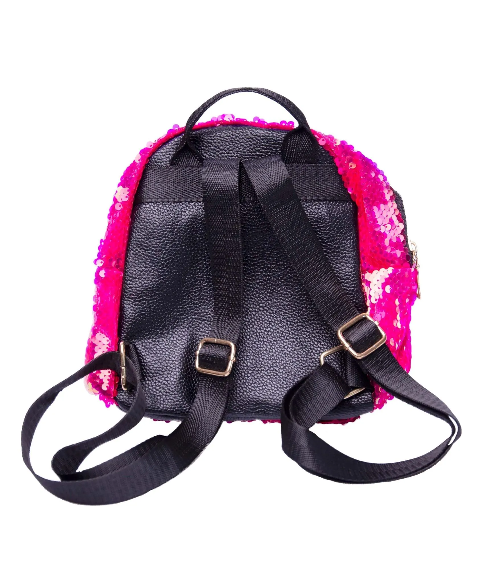 Очаровательный розовый рюкзак с ушками, усыпанный пайетками.